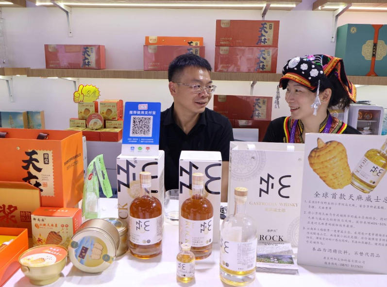 在南博会昭通天麻药食臻品展区,全球首发的天麻威士忌吸引了众多外商目光,开展首日便签下三年期合作订单;天麻醒脑胶囊、双通压片糖果、天麻超细粉等产品,展现了“药品、食品、保健品、日化品”四位一体的产品矩阵。2025年南博会期间,12家昭通企业参展,线下成交14.11万元,意向订单706万元,昭通天麻正以多元姿态,征服国内外消费者味蕾。